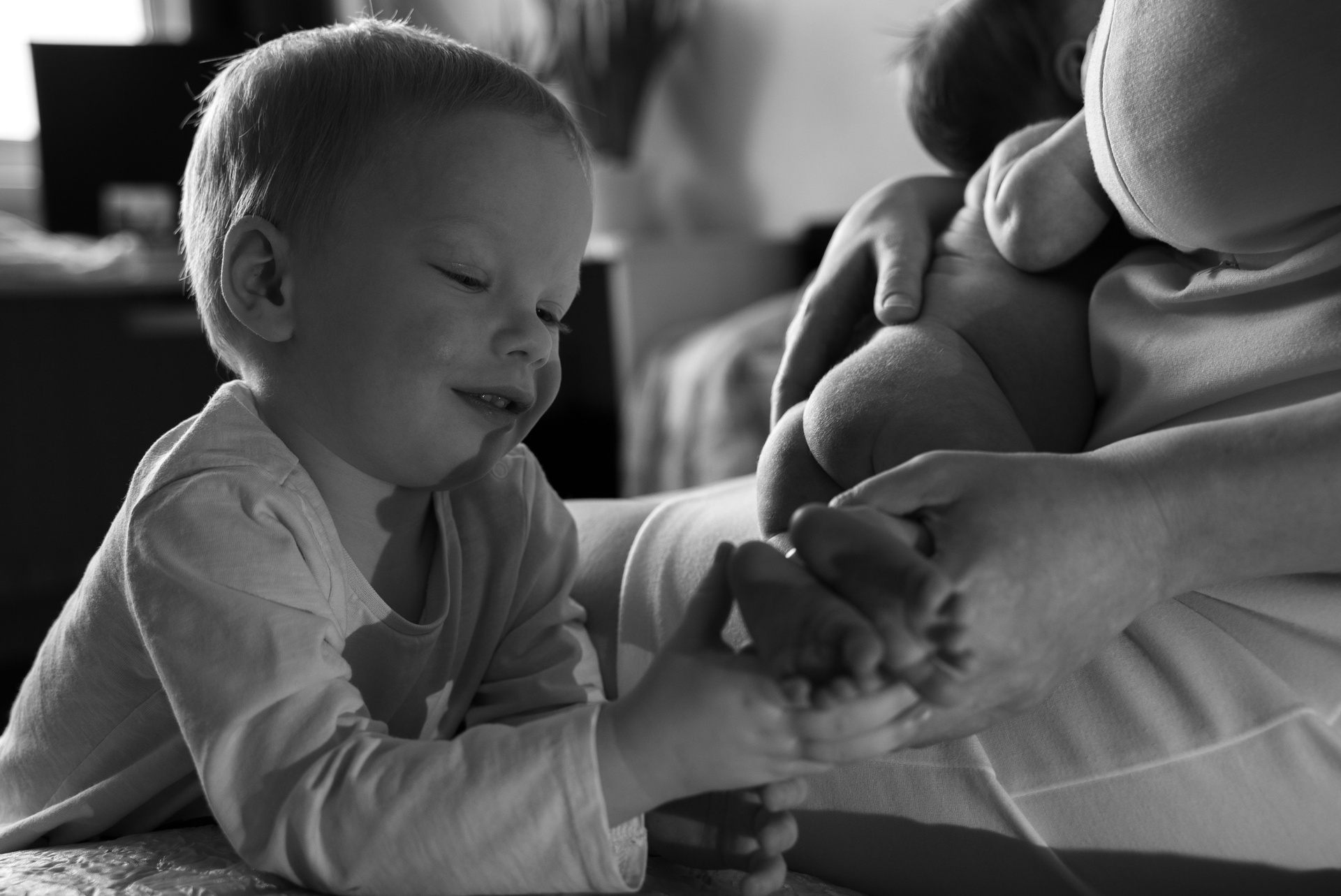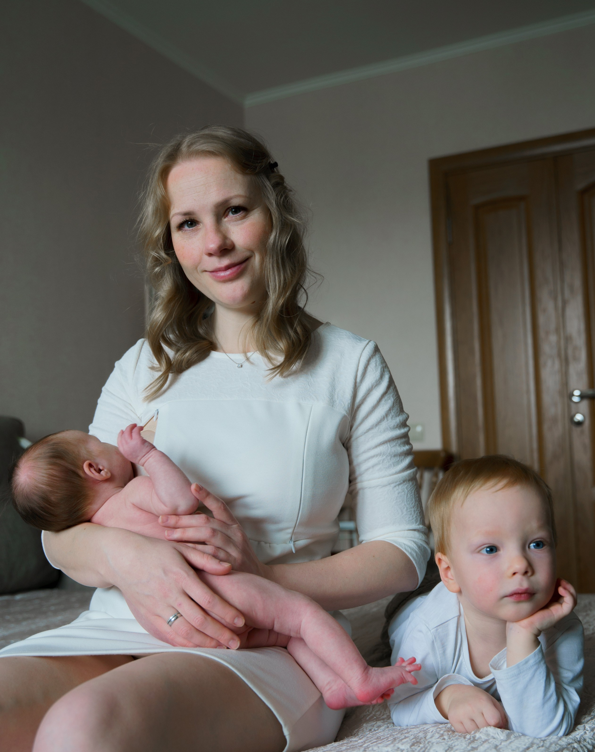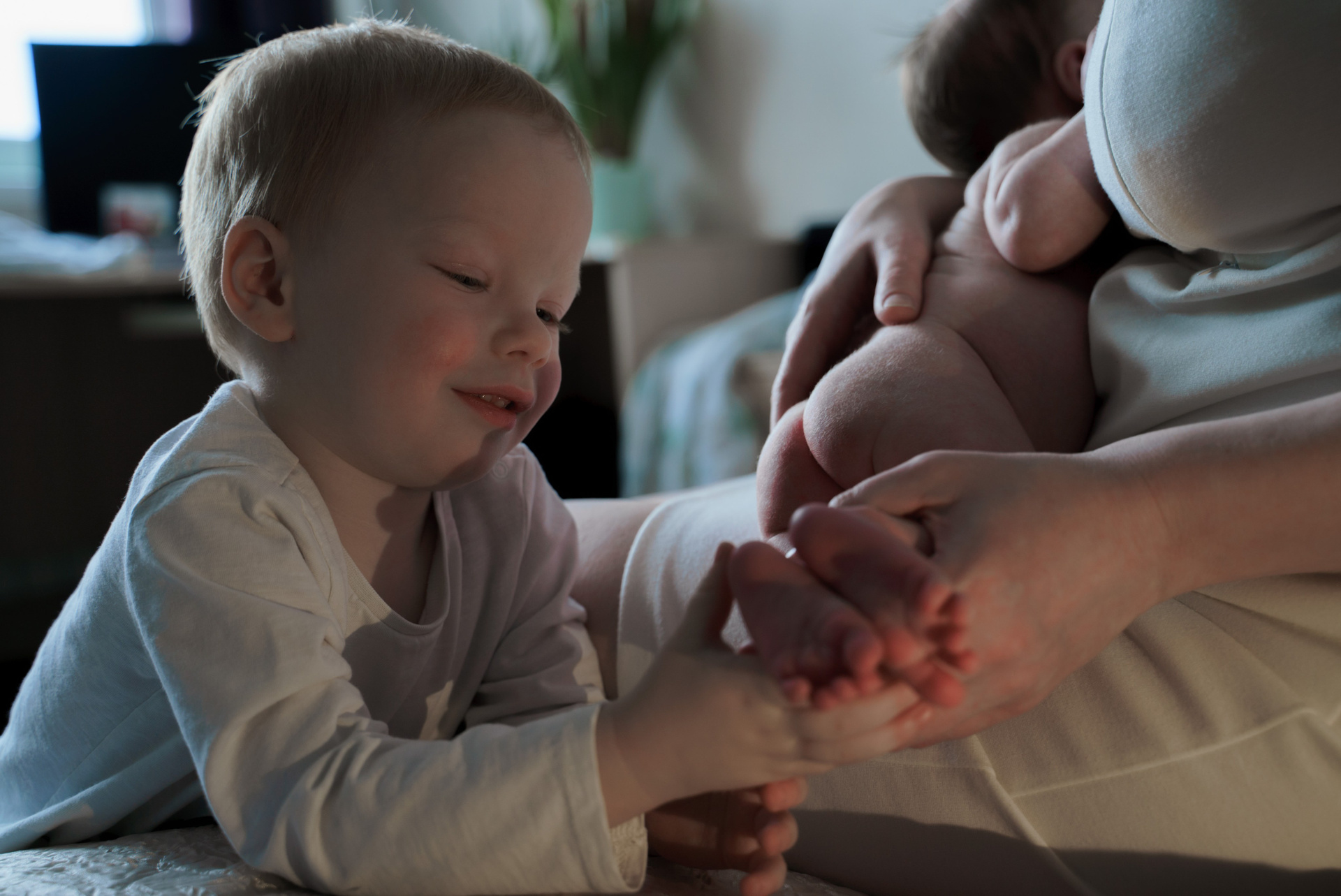 Домашняя съемка семьи с мальчиком и девочкой — малышкой